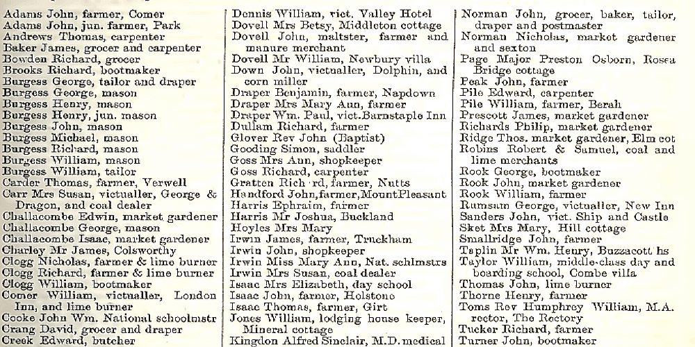 Among many old industries here, there were smelters, tanneries, quarries, corn mills and blacksmiths, and lime-burners. The range of old skillsets is extraordinary, and more Combe Martin trades and businesses can be found on these pages.