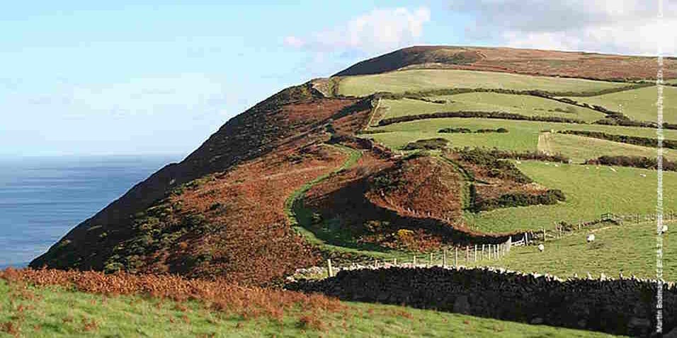 Little Hangman is 716 feet (218 m) high and overlooks the village of Combe Martin at the western boundary of Exmoor National Park. Both hills looming over the Combe Martin valley were used for mineral exploration and extraction.
